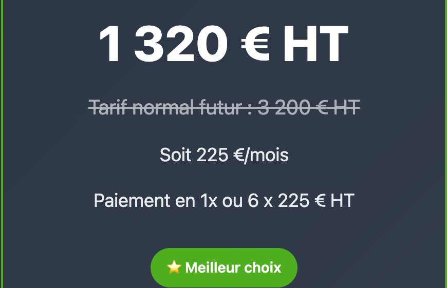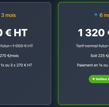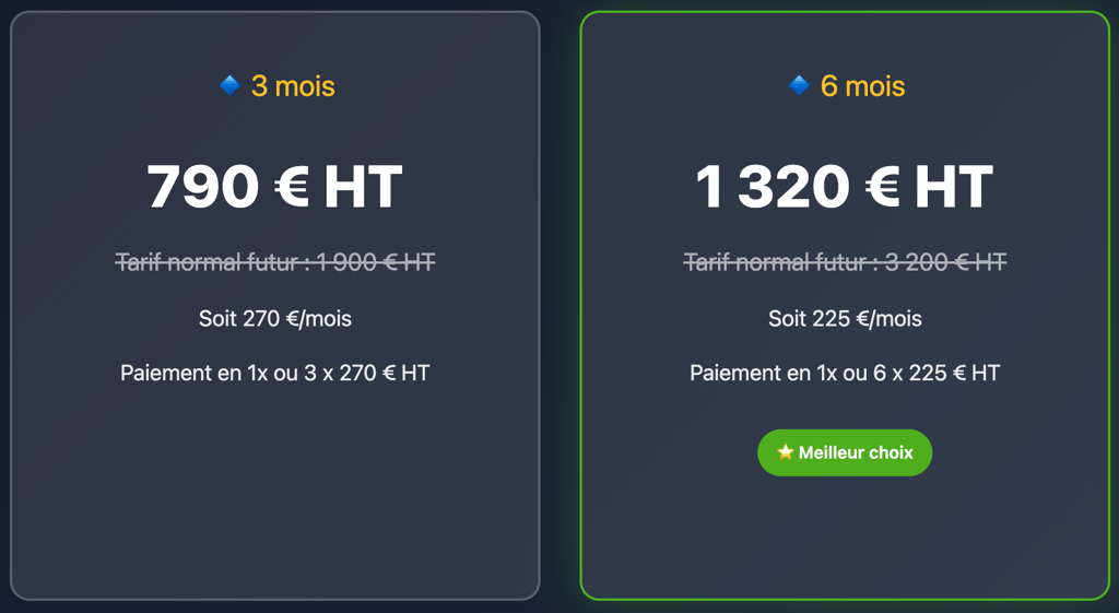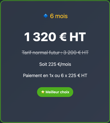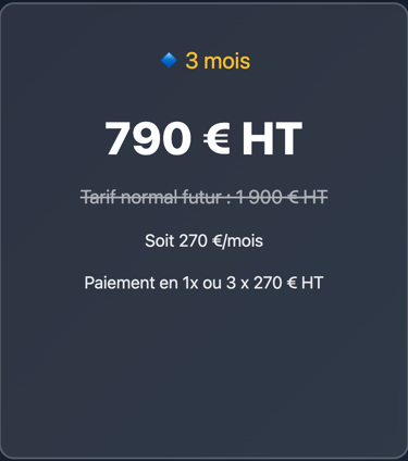 ⏰ Ces tarifs fondateurs sont strictement réservés aux 3 premiers dirigeants.